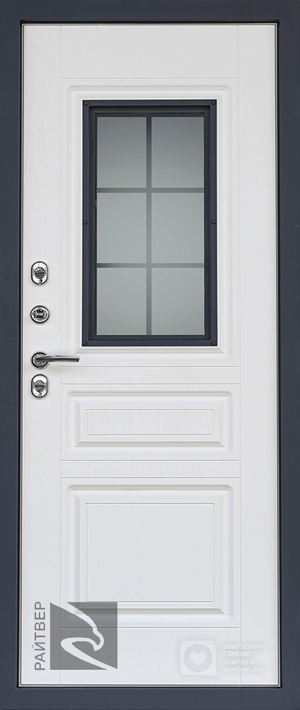• Отделка: «МУАР RAL 7024» + грунт-барьер «AKZO NOBEL», с глубокой давкой, стеклопакет / 10 мм фрезерованная панель, Ясень белый